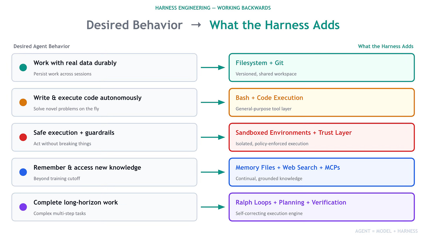 Start with the behavior you want from the agent, then design the harness to enable that behavior.